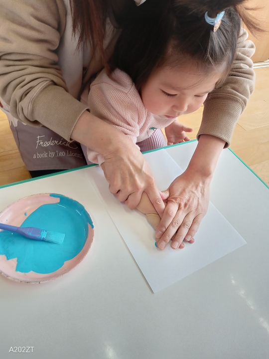 まだまだ小さくても、しっかり大きくなったお手々に絵の具を塗りぬり♪