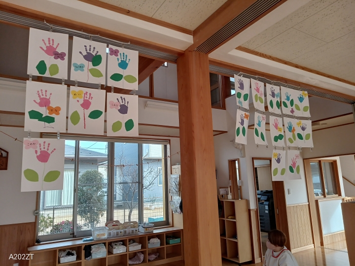 保育室に花畑が出来上がり、ぱっと明るい雰囲気になりましたよ♪♪