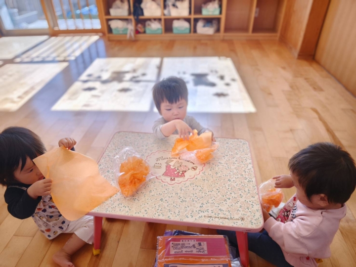 今年度は0歳児ほし組さん4名、1歳児にじ組さん8名、2歳児つき組さん7名でのスタートです(*^-^*)