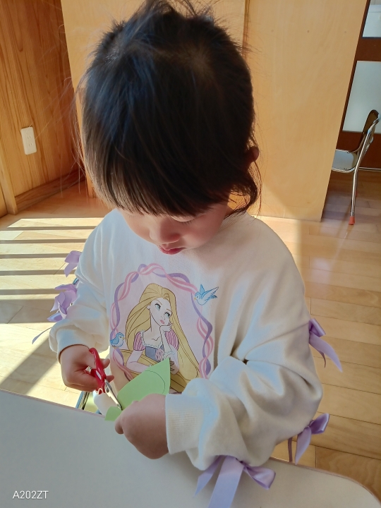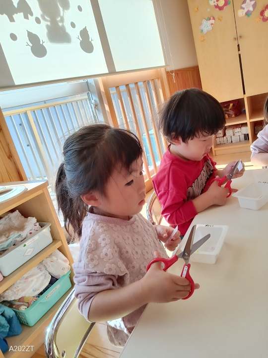 つき組さんはハサミを使ってお洋服をチョキチョキ☆
