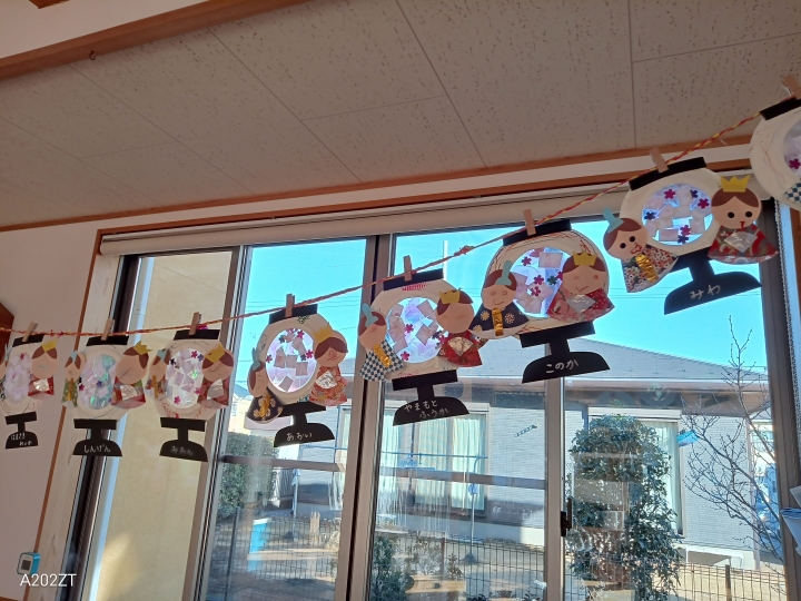 保育園のお部屋もみんなでつくったオーナメントや、おひなさまタペストリーでひなまつりムード(*^-^*)