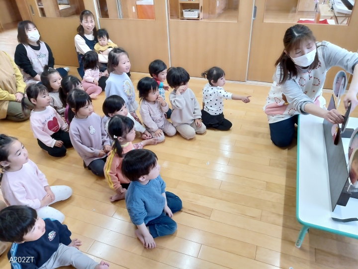 入ったばかりの新しいお友だちも、泣かずにみんなの前に座ることができました☆