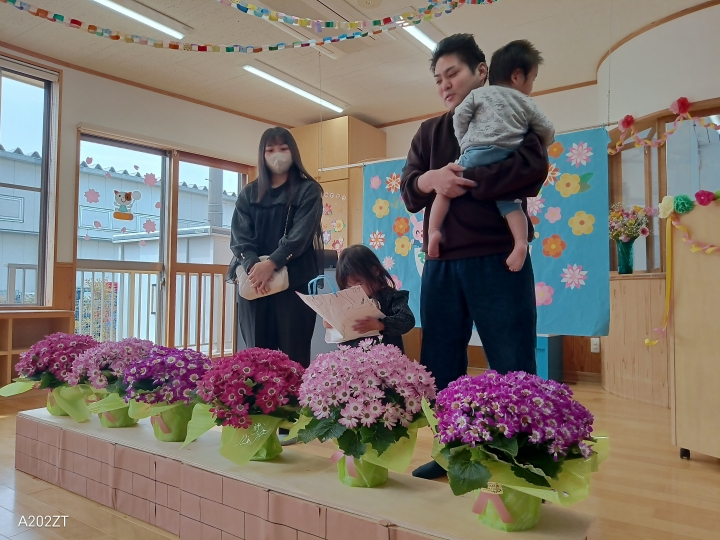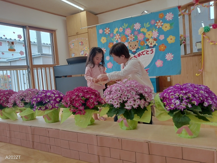 一部では大きく成長することが出来たお友だち一人一人に、園長先生からプレゼントカードと記念品の贈呈があります。
