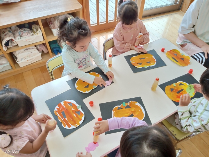 ゆり保育園のお友だちも、ハロウィンのお制作をしました!