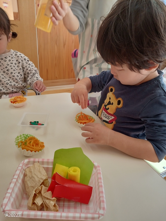 ほし組さん、にじ組さん、つき組さん、それぞれ担当を決めて品物づくりをしましたよ♪